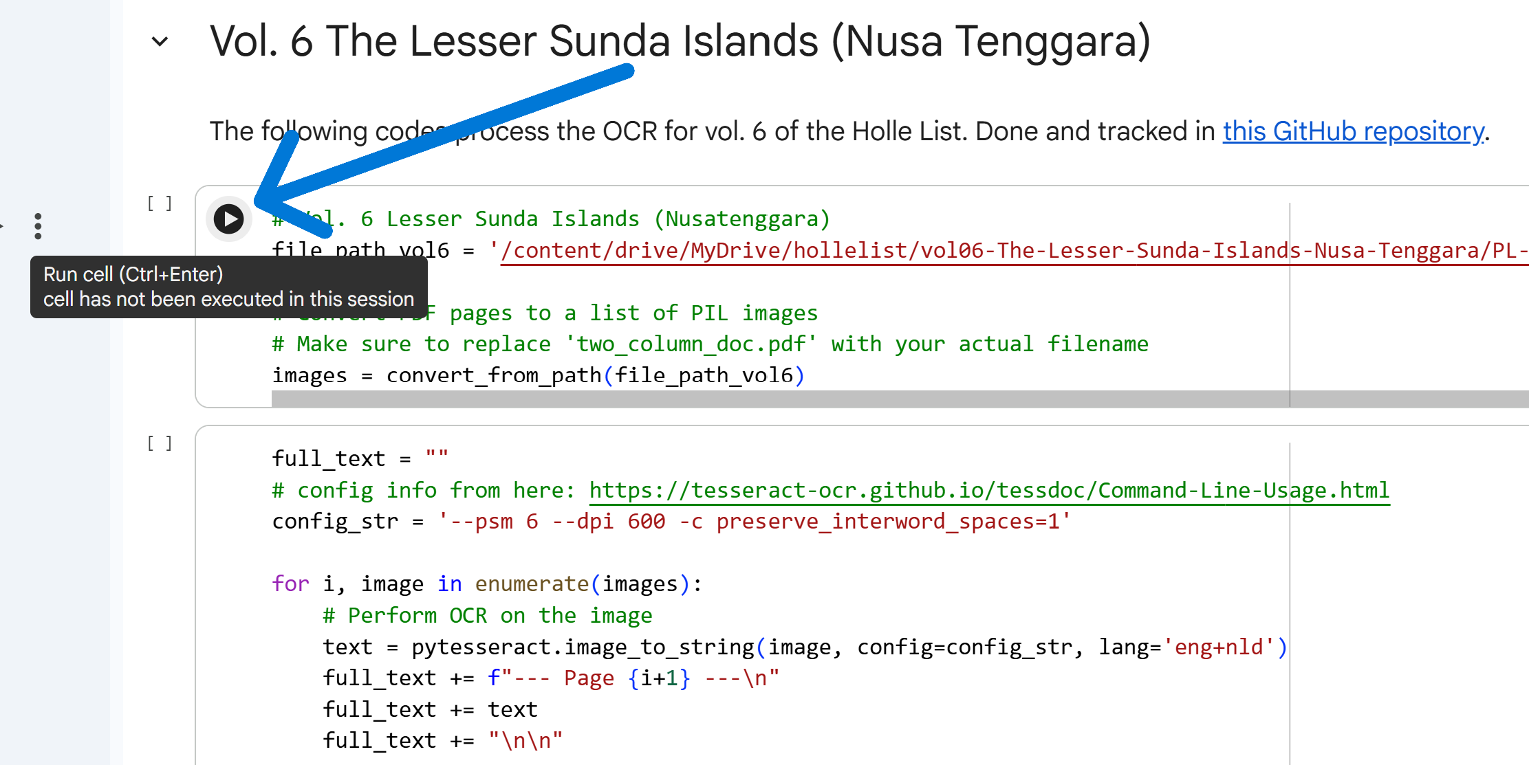 This section covers two main points. First, accessing the scanned Holle List publications in PDFs (§ 2.1). Second, the computational processing (i.e., the coding components) on Google Colab to remediate these PDFs into text files (§ 2.2).